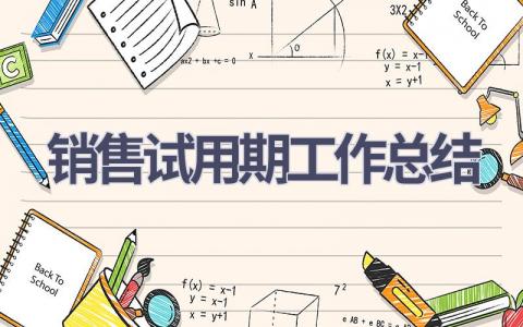 “销售试用期工作总结”是指销售人员在新岗位上试用期间对自身工作表现、业绩、经验教训、不足之处等方面进行总结和反思。这个总结可以帮助销售人员更好地了解自己的工作表现,发现不足之处,为今后的工作提供参考和改进方向。以下是有关于销售试用期工作总结的有关内容,欢迎大家阅读!