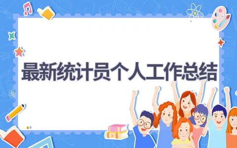 “最新统计员个人工作总结”这个词的意思是:一份报告,通常由统计员完成,总结他们在过去一段时间(如一个月、一个季度或一年)内的工作情况、成绩和经验教训。这份报告通常包括对工作的描述、完成的任务、数据收集和分析、结果和结论,以及对未来工作的建议。这份报告是统计员对自己工作的一个反思和总结,也是他们向上级汇报工作成果的重要文件。以下是有关于最新统计员个人工作总结的有关内容,欢迎大家阅读!